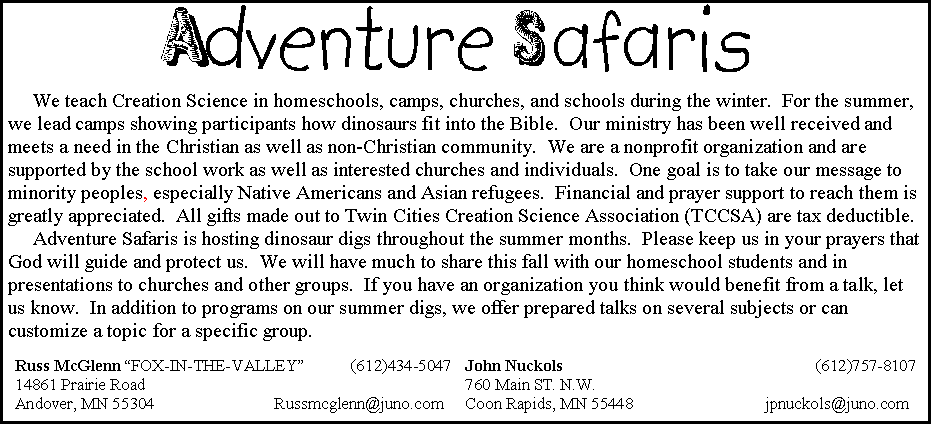 Post-Flood Catastrophes 7:30, Tuesday, July 18, 2000, Erickson Center, Rooms A & B, Northwestern College, Roseville