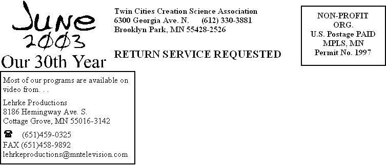 Coming up. . . July 15 - Video - Unlocking the Mystery of Life August - No meeting or newsletter. - Make it a priority to spend time with your family this summer. You will be glad you did. September 16 - 30th Anniversary celebration Check www.tccsa.tc for other activities in our area.